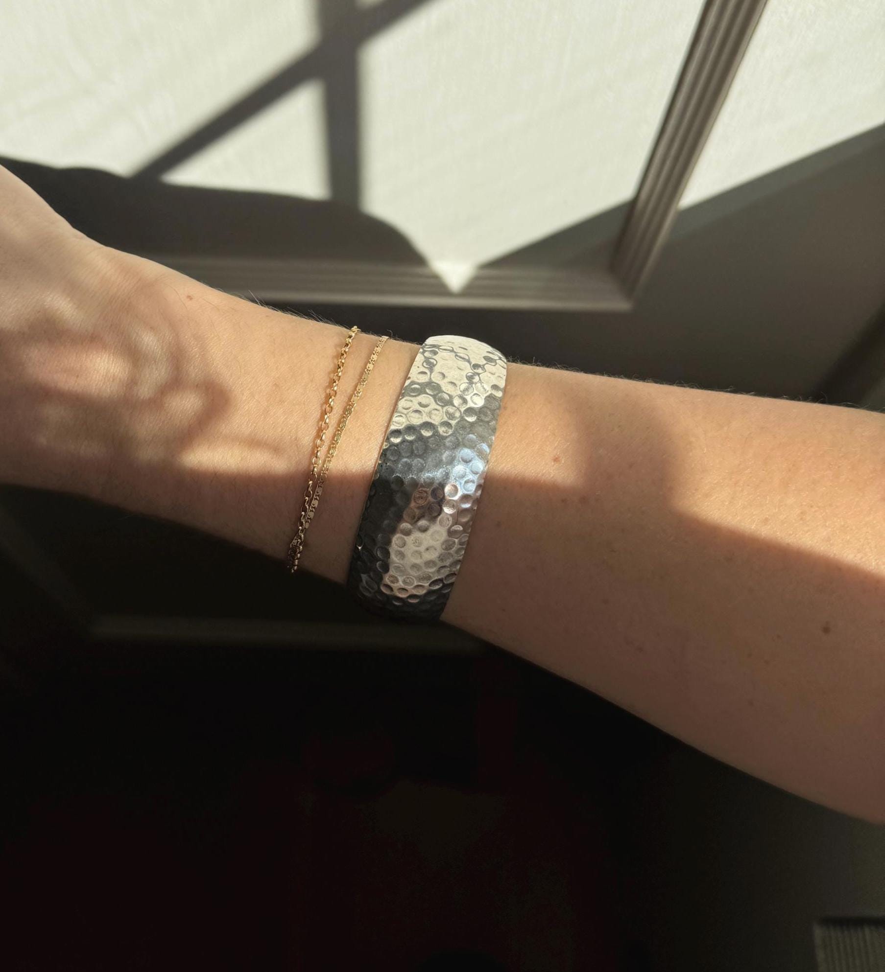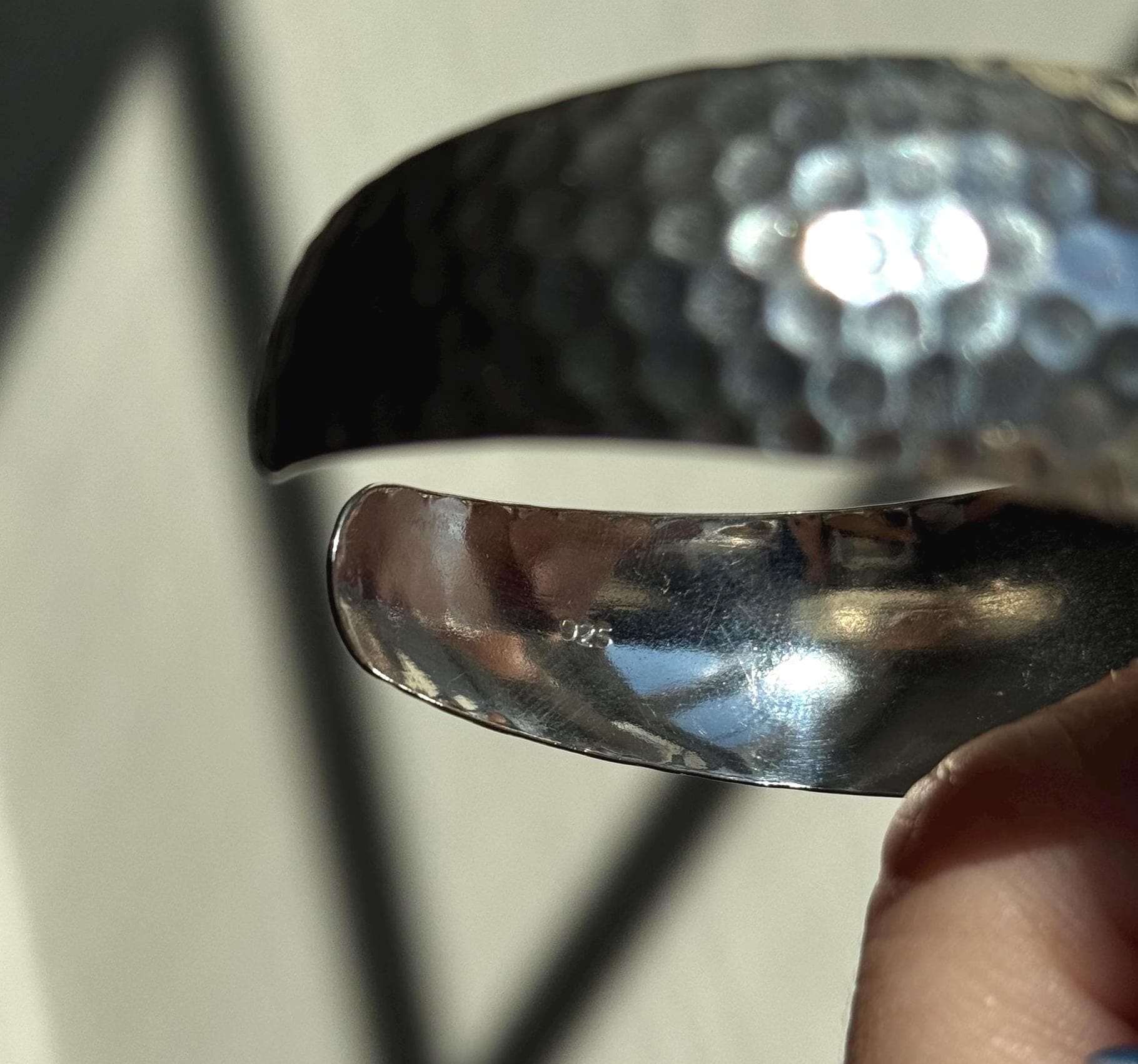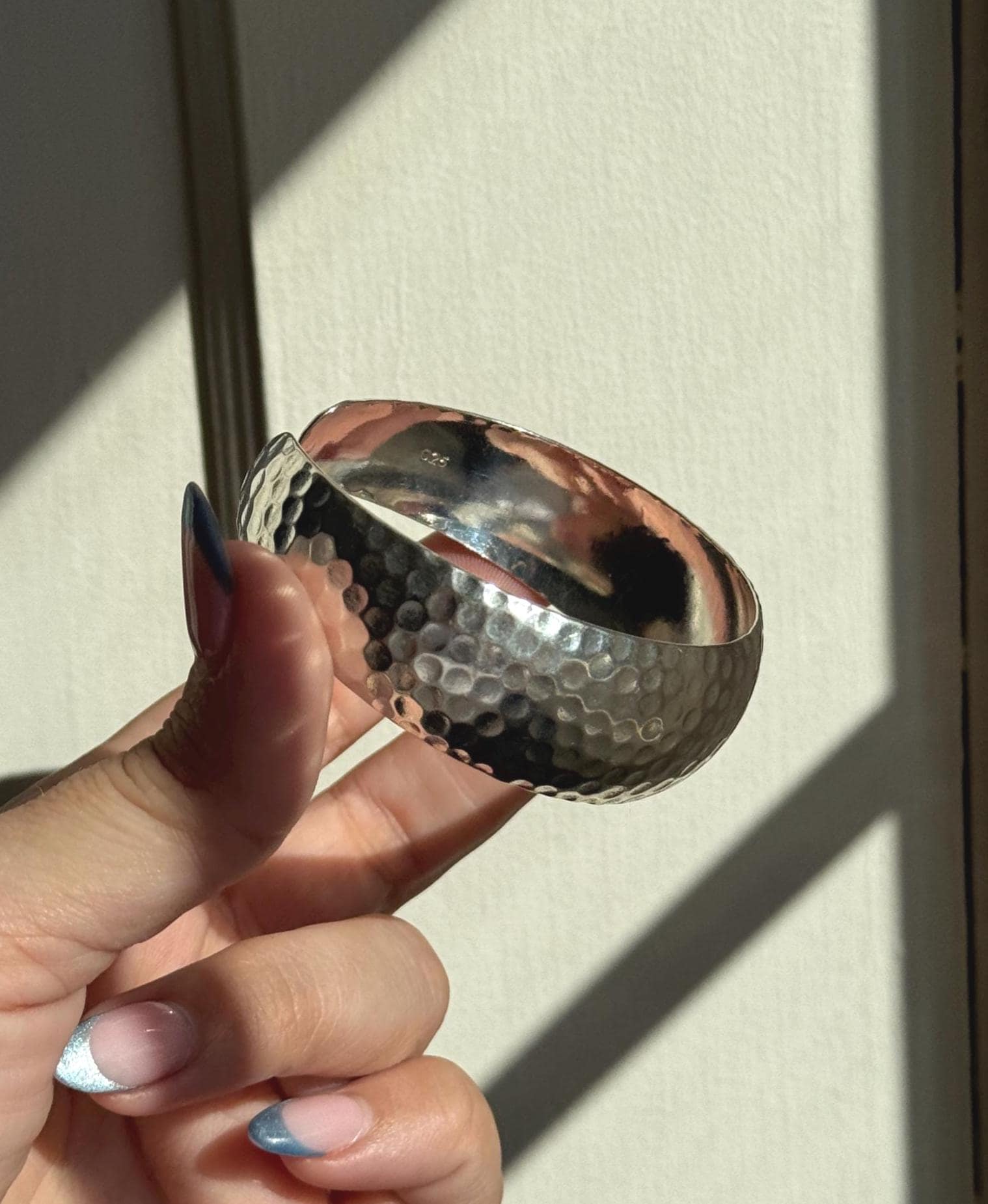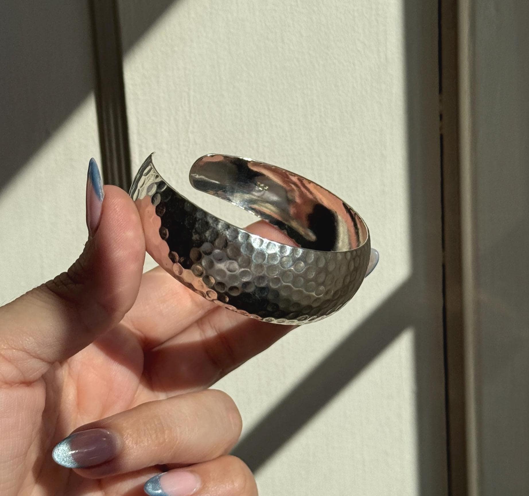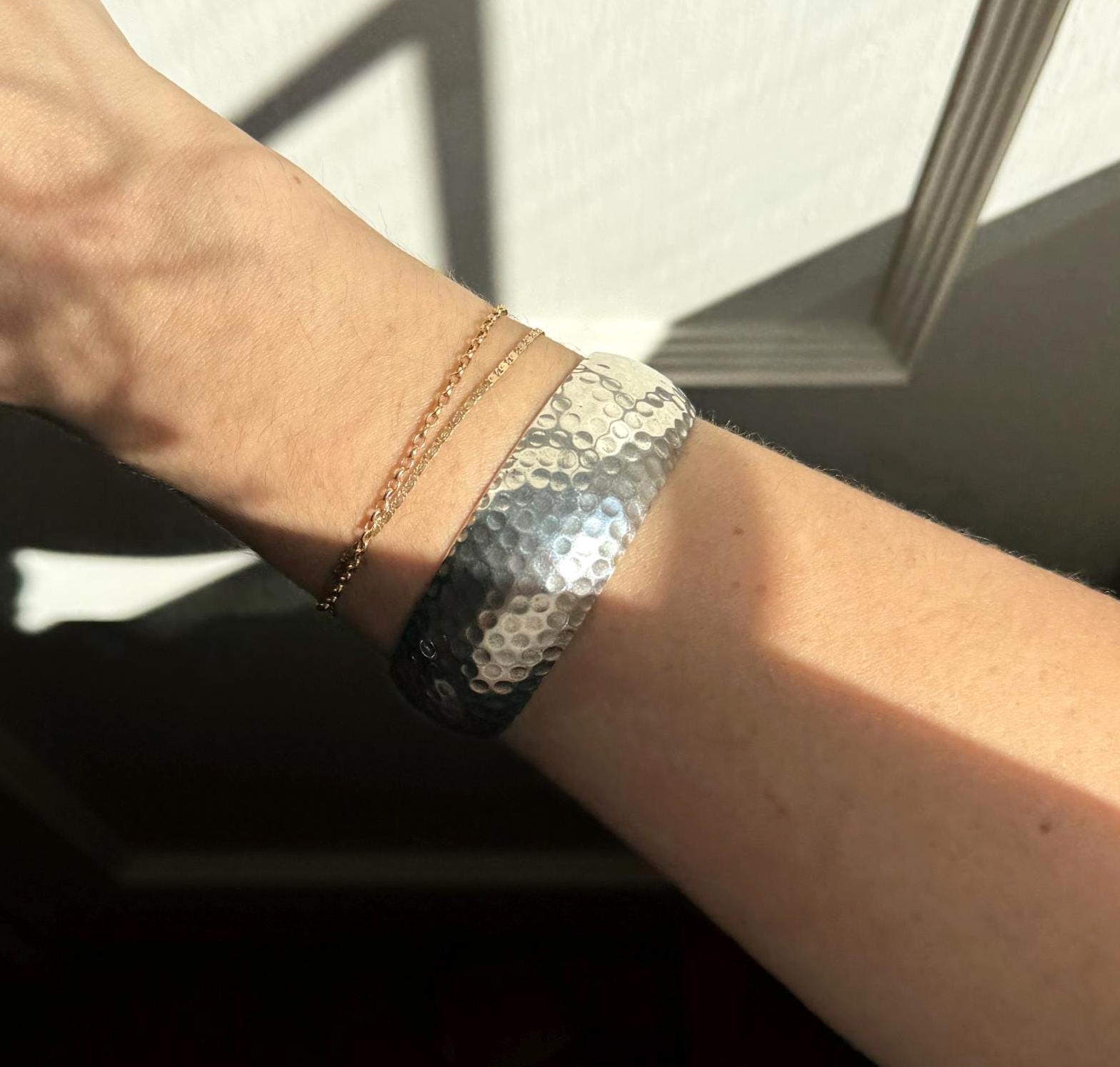 A cool vintage sterling silver cuff. This piece has a neat "dotted" hammered texture that picks up light like a disco ball. It's a great modernist statement piece.