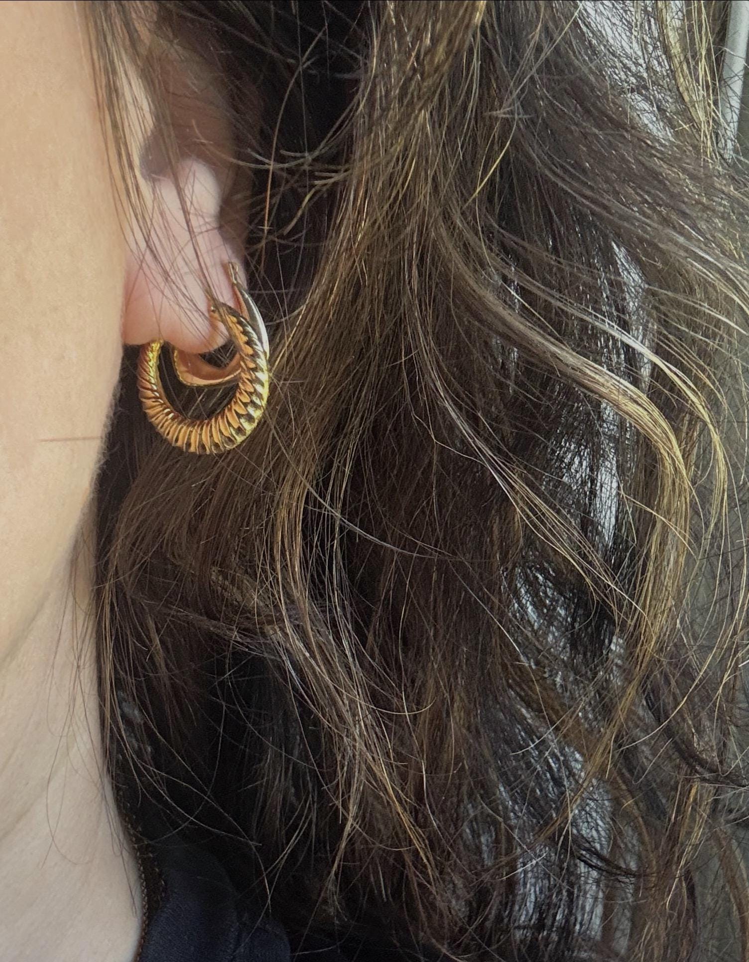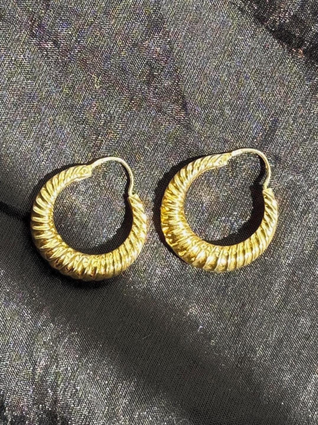Very cute antique 8k solid gold earrings in fantastic condition. They are dainty, yet visually interesting featuring a ribbed design.