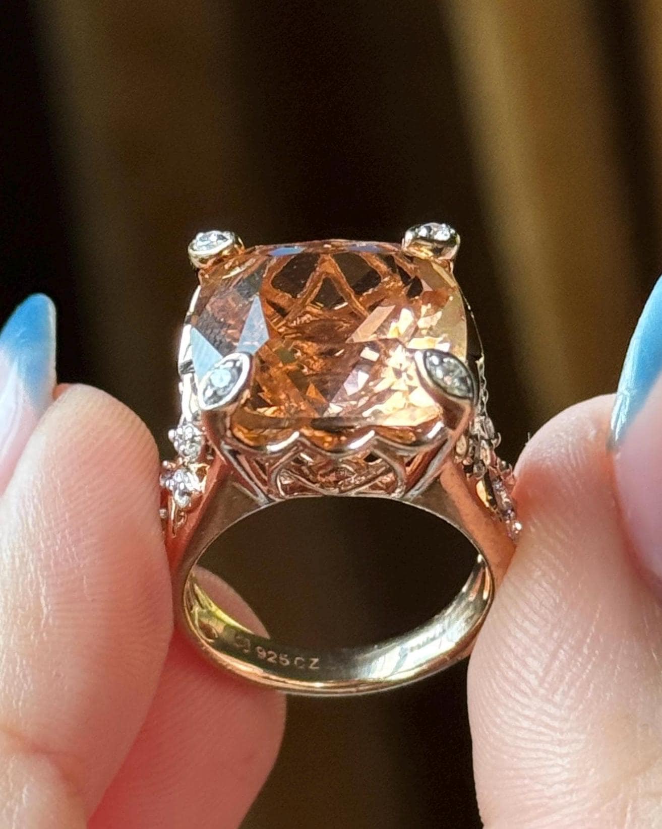 Vintage Peachy 925 Gold Vermeil Cocktail Ring