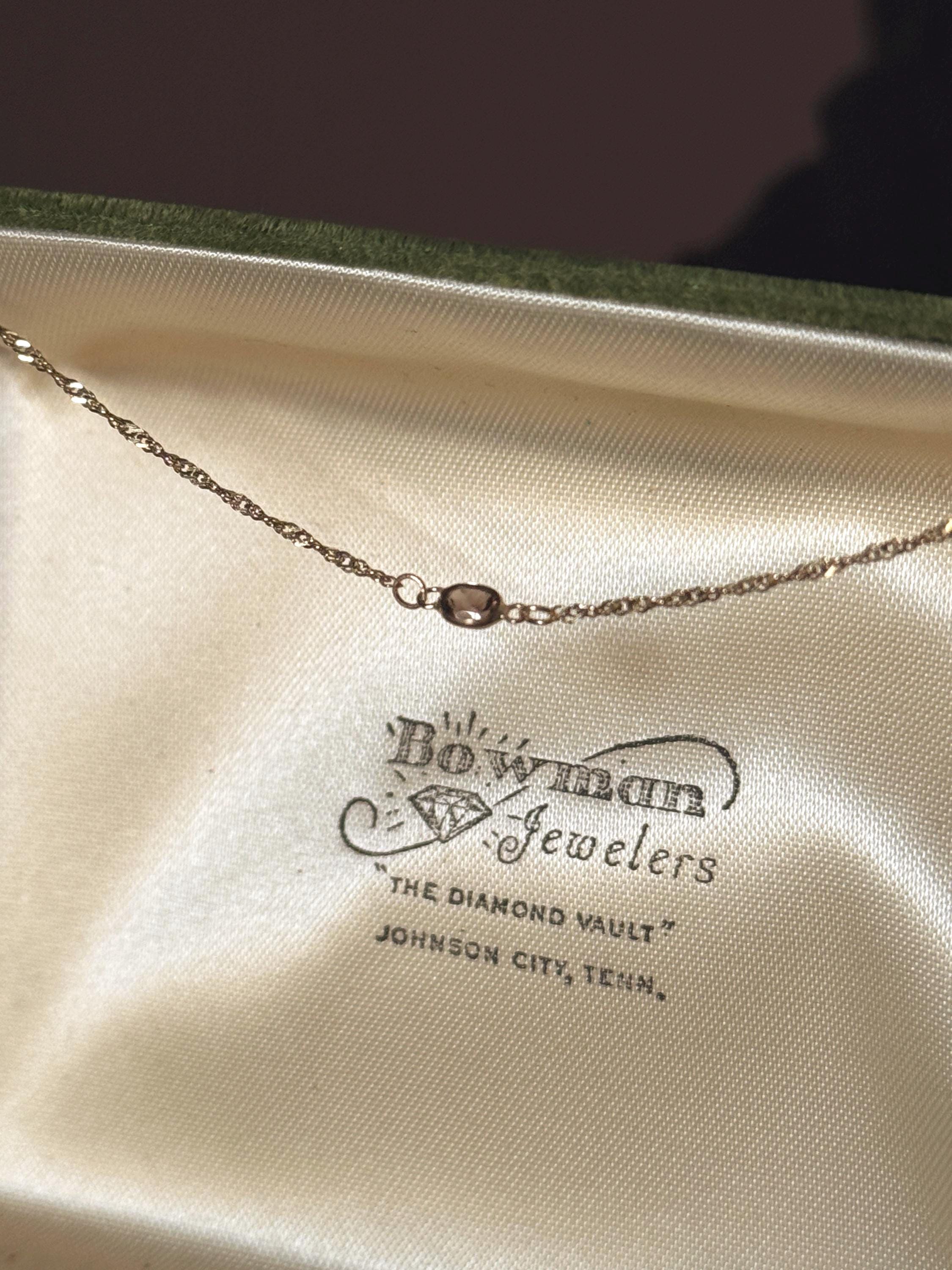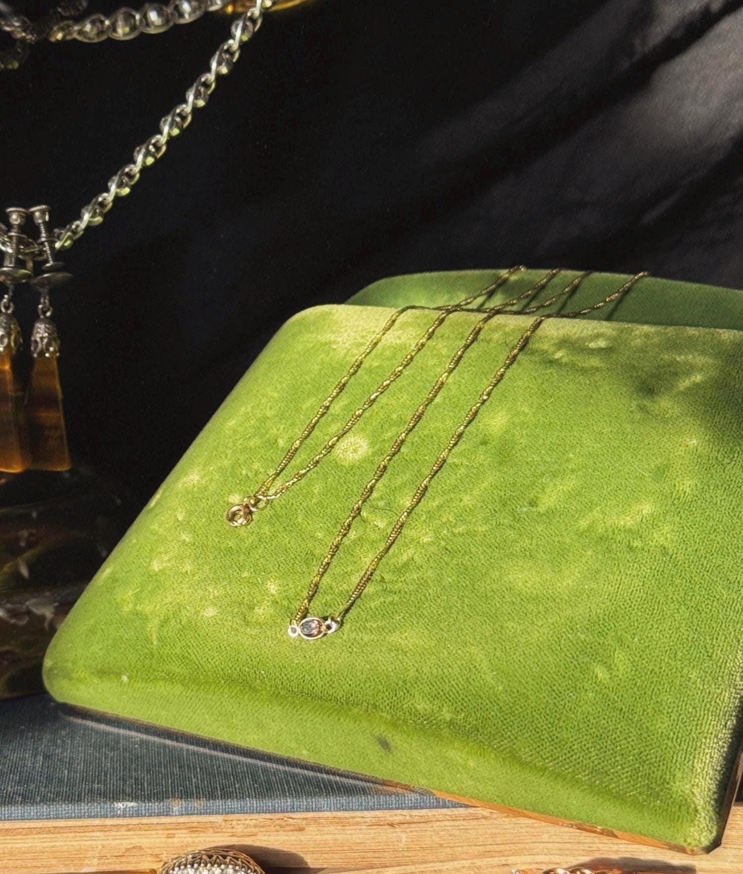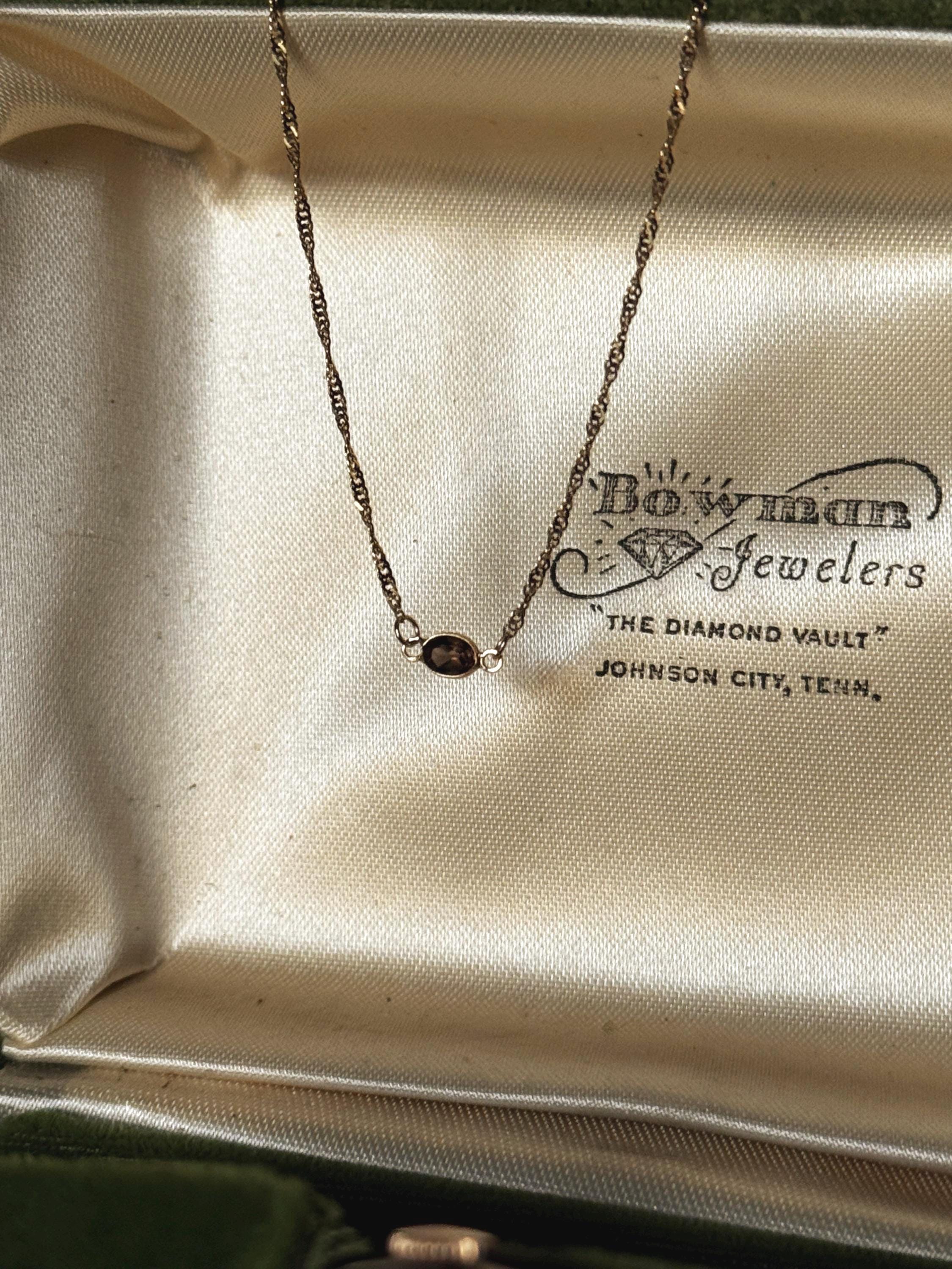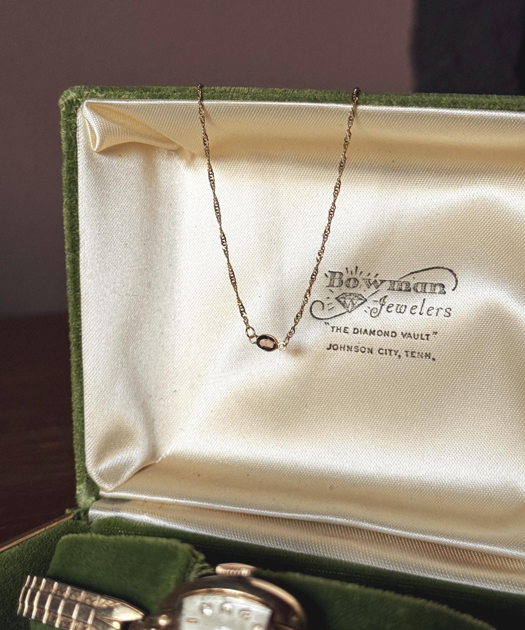 A one-of-a-kind, handmade by Feral Ties collar-length necklace using a vintage solid gold chain and a modern solid gold charm with smoky quartz as a center stone. A dainty and understated necklace perfect for everyday wear and special occasions alike. Stack it or wear it on its own.