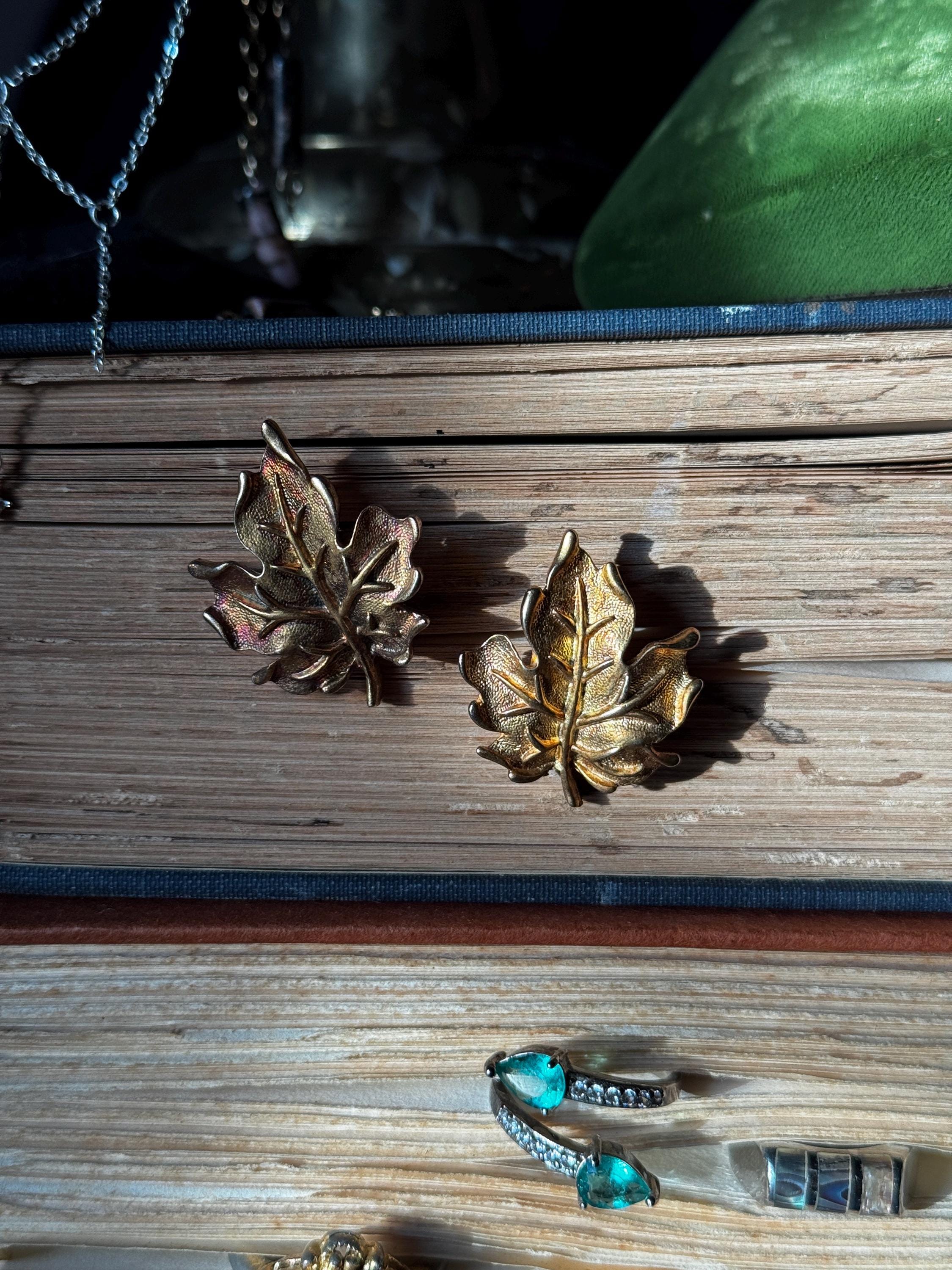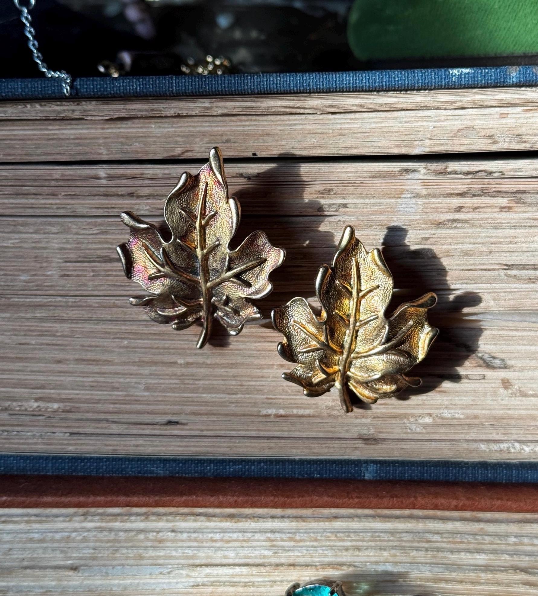 A super cute pair of autumn leaf shaped earrings, vintage circa the 1980s