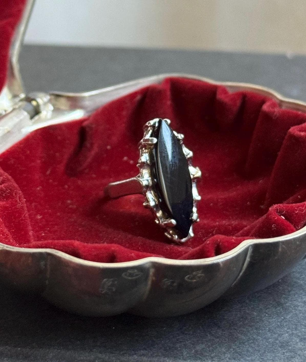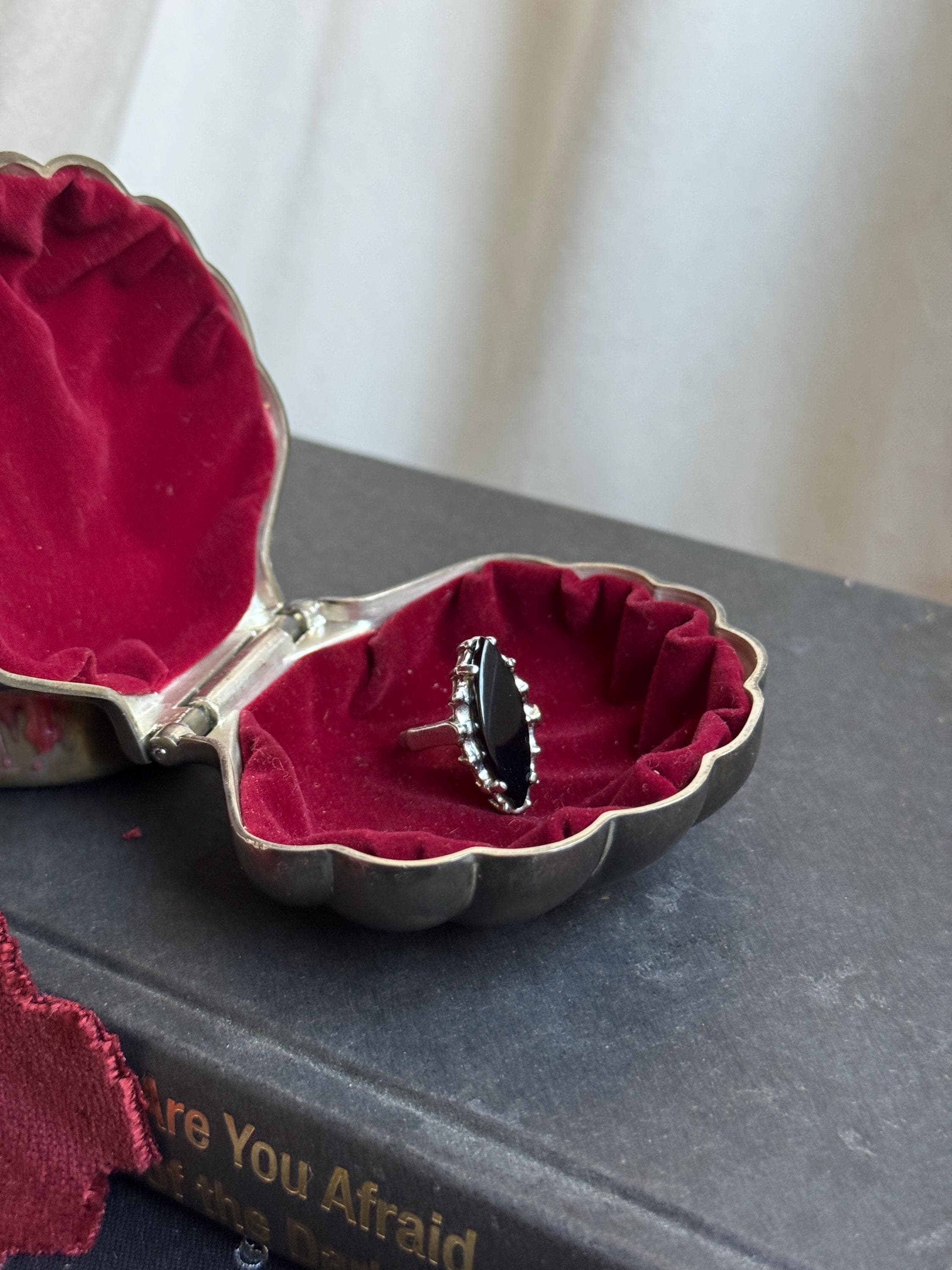 Vintage Uncas Mfg Co Black Navette Ring