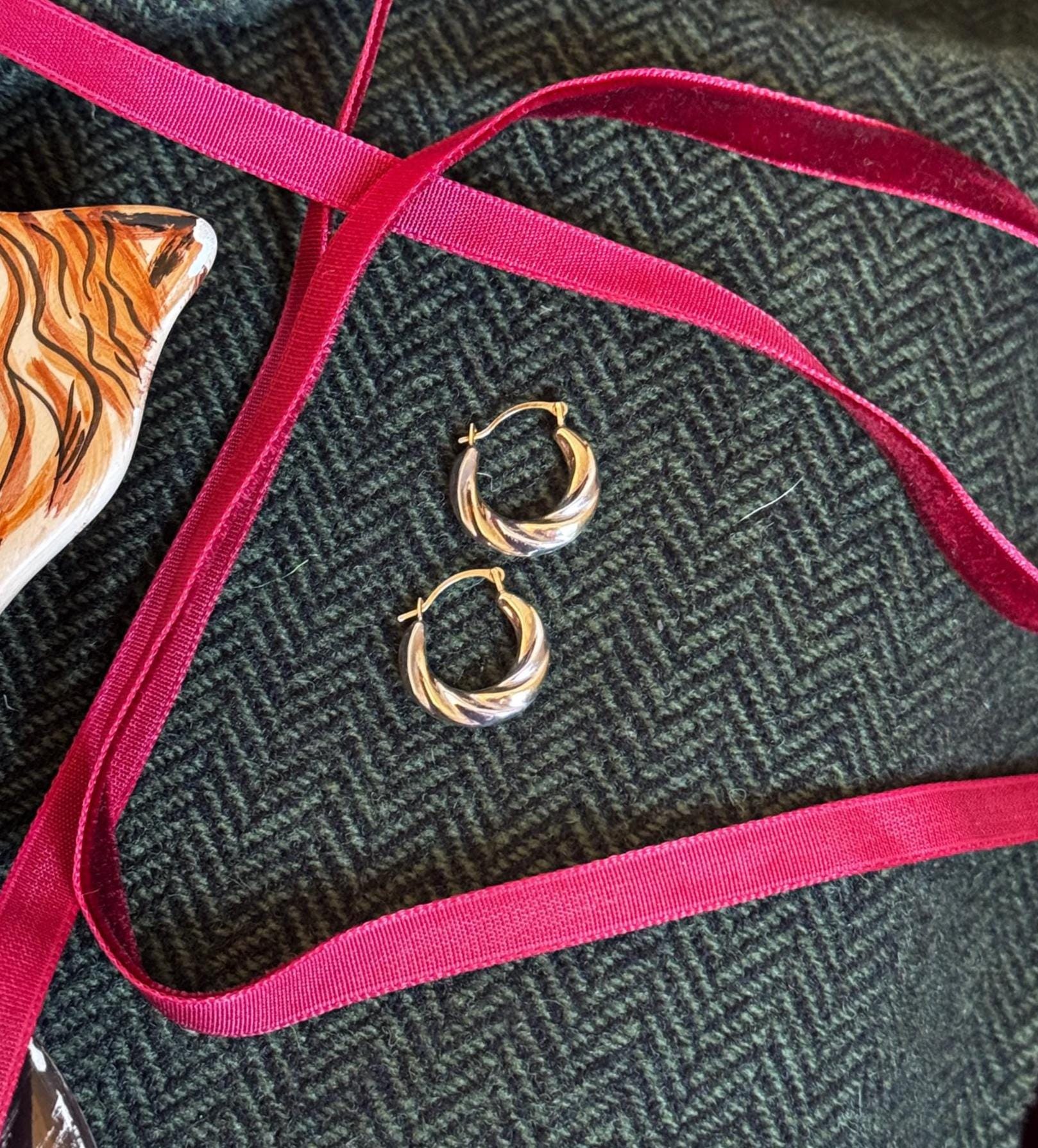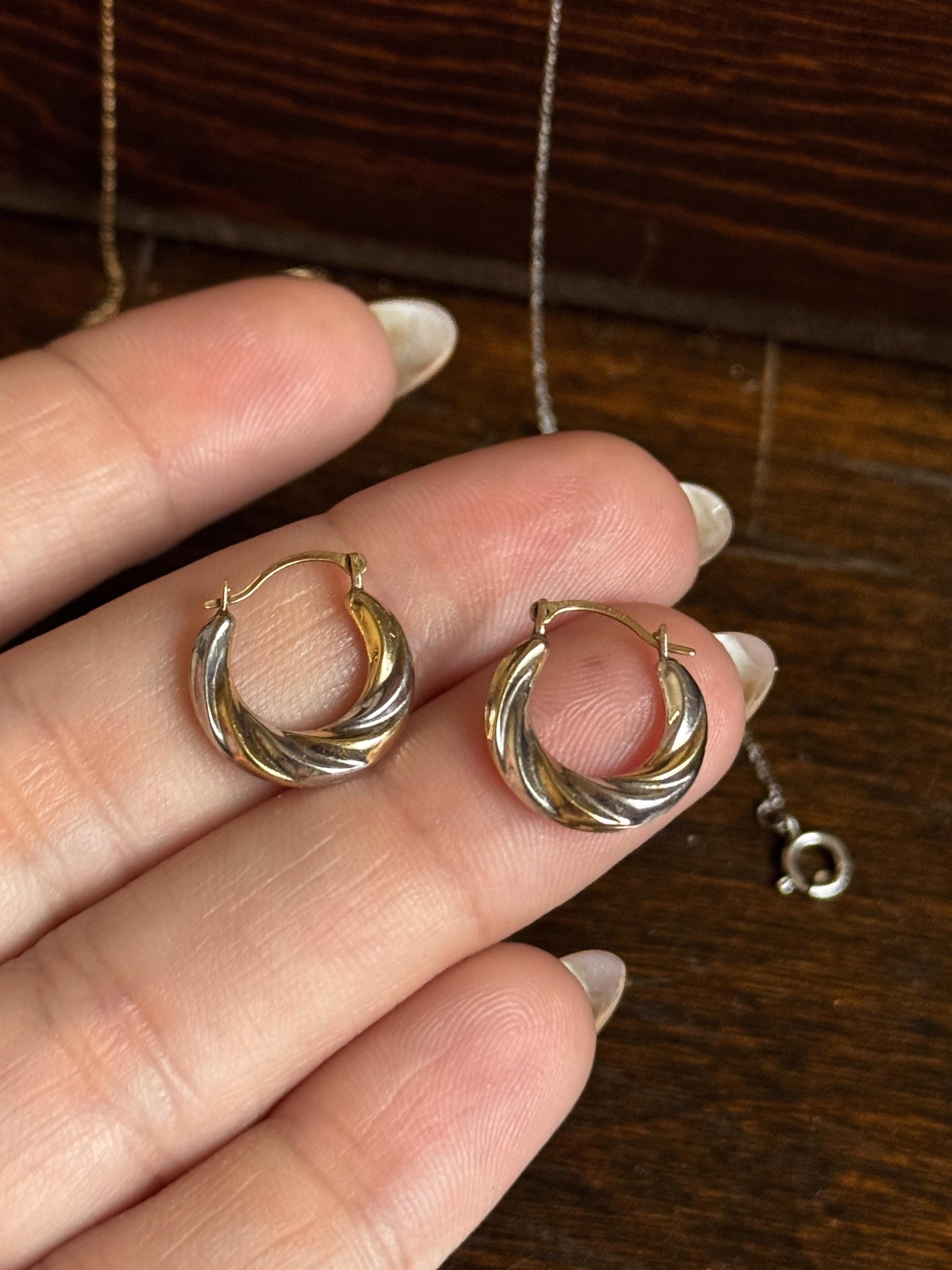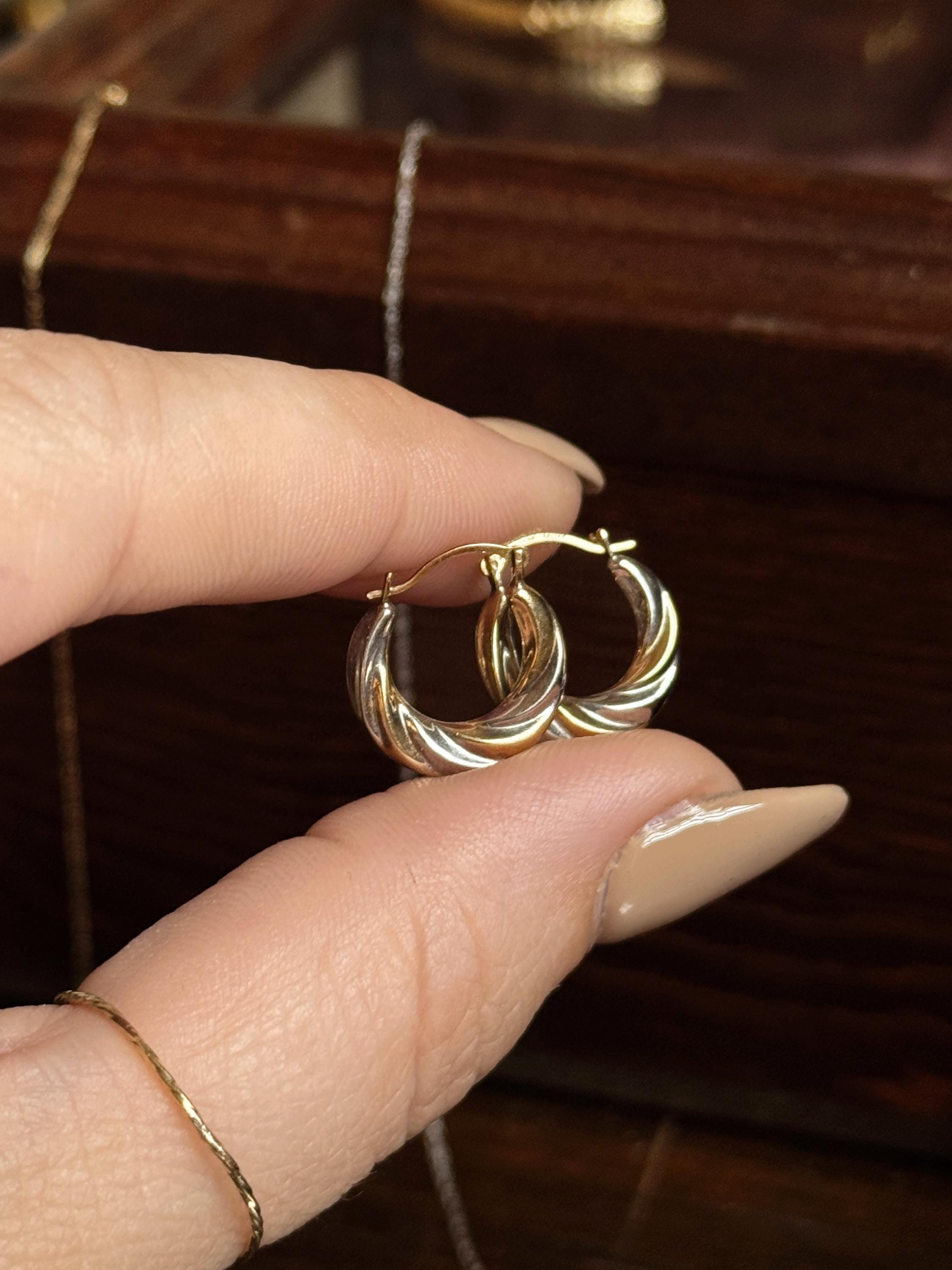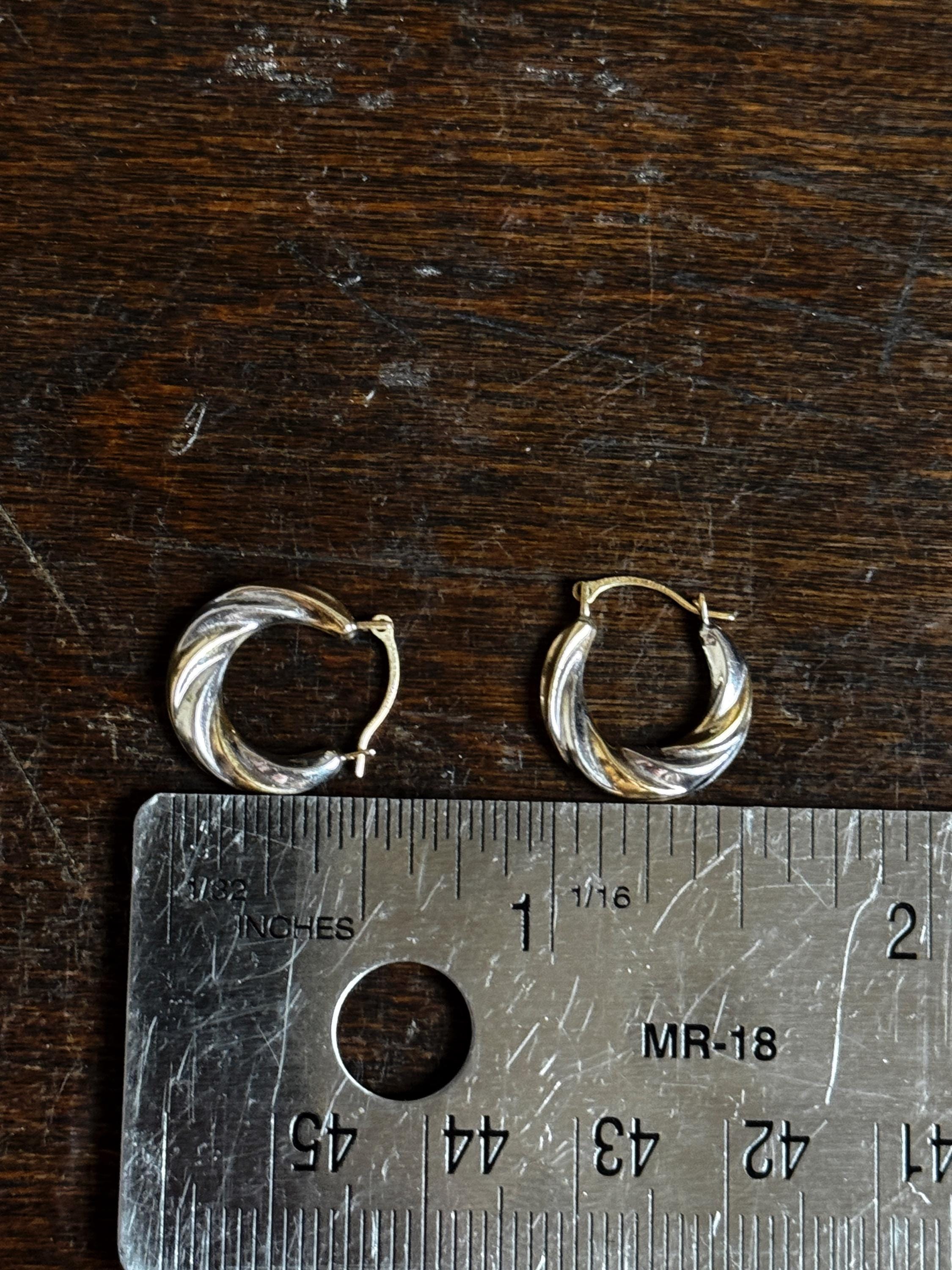 Vintage 10k Two-Toned Twisted Puff Hoops