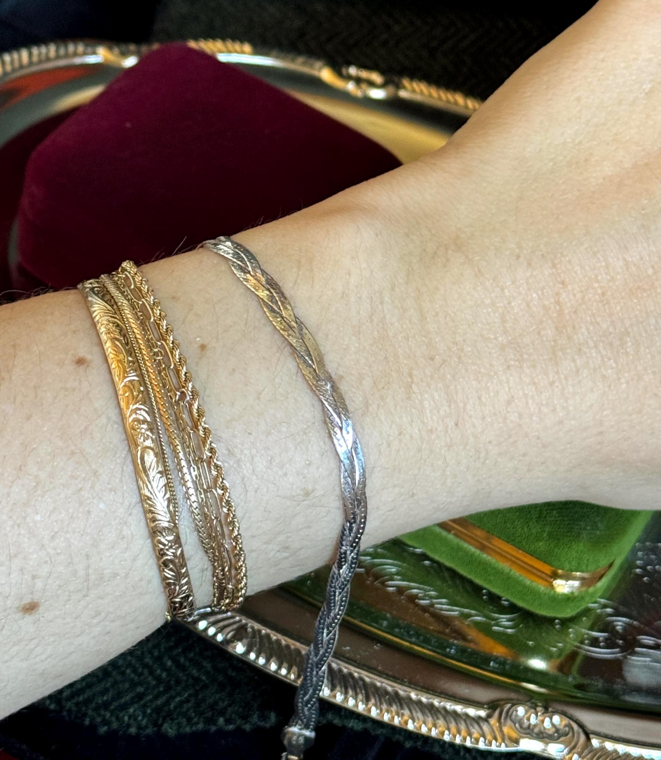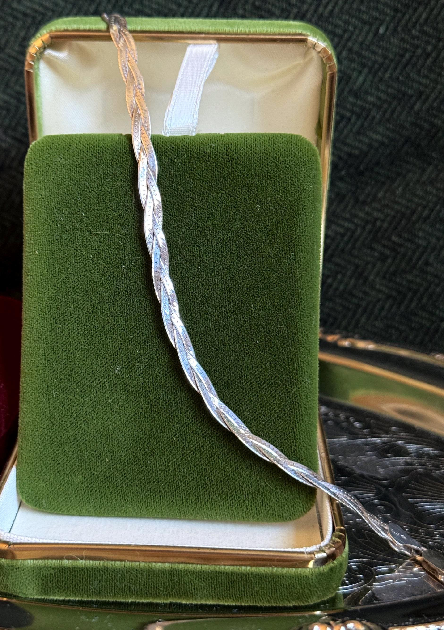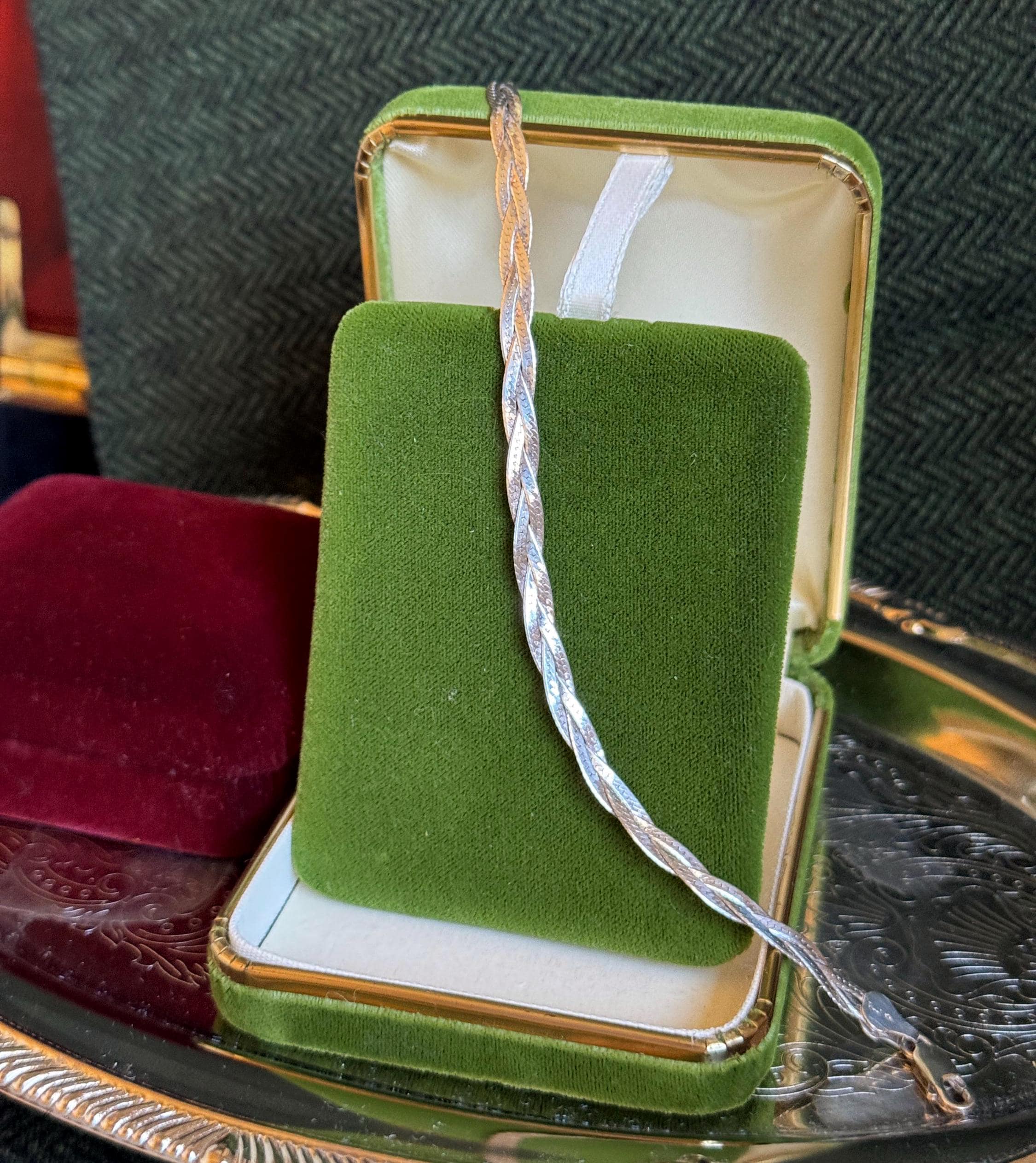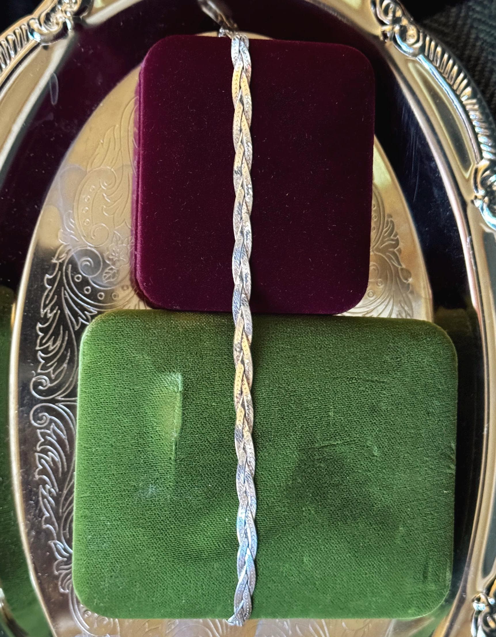 An effortlessly cool sterling silver chain bracelet consisting of 3 braided herringbone chains. This bracelet lays neatly and comfortably on the wrist and would be a great fit for anybody.
