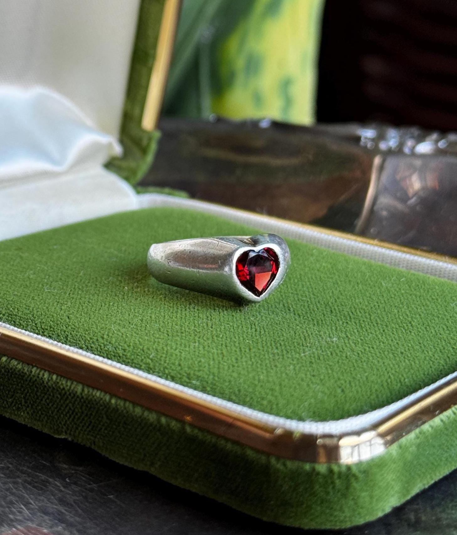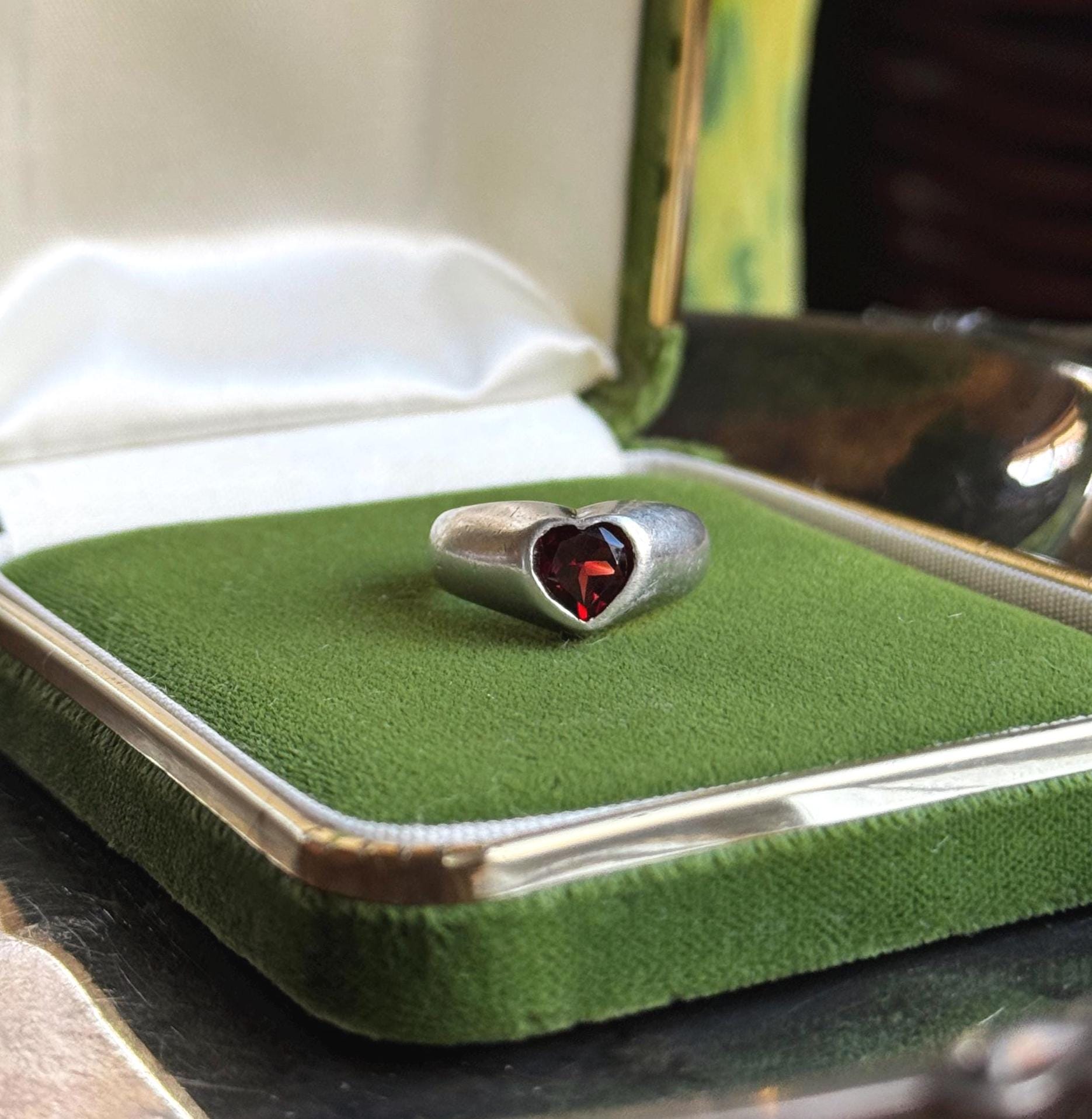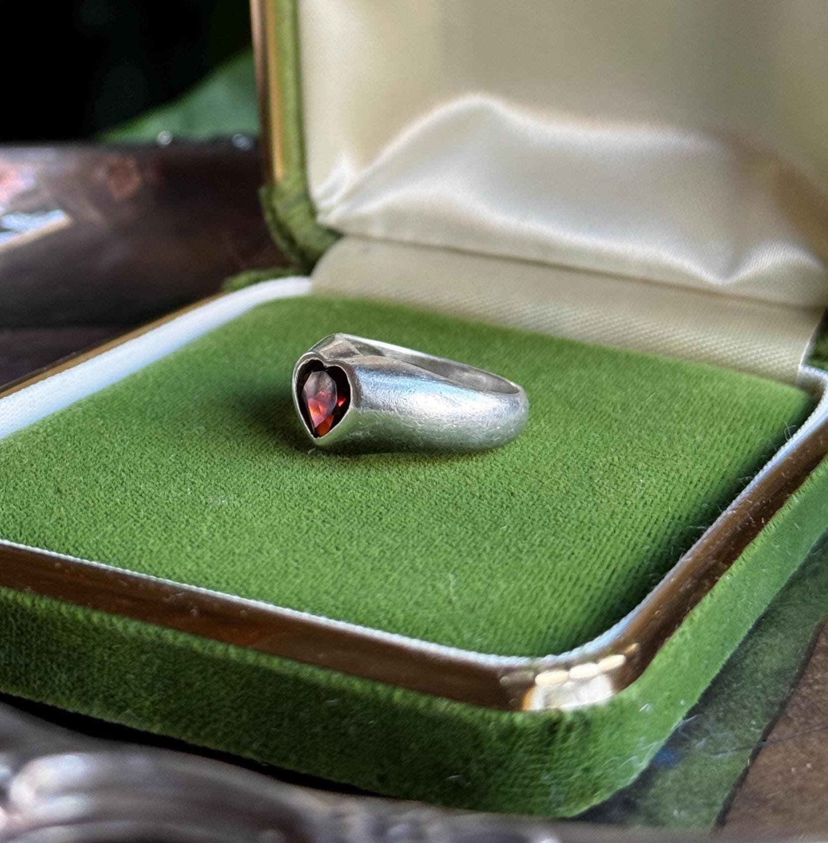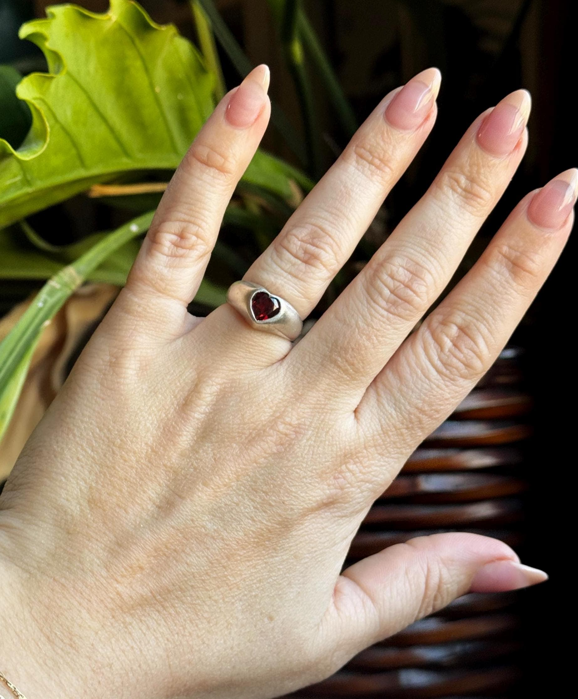 Heart-shaped Garnet Sweetheart Signet